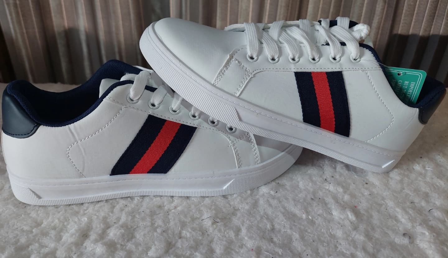 Zapas blancas lineas azules rojas